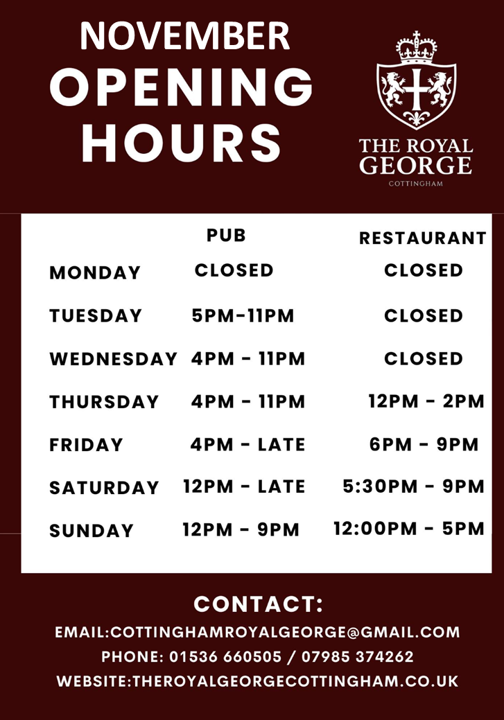 You can also email us at cottinghamroyalgeorge@gmail.com. or message us on Facebook.